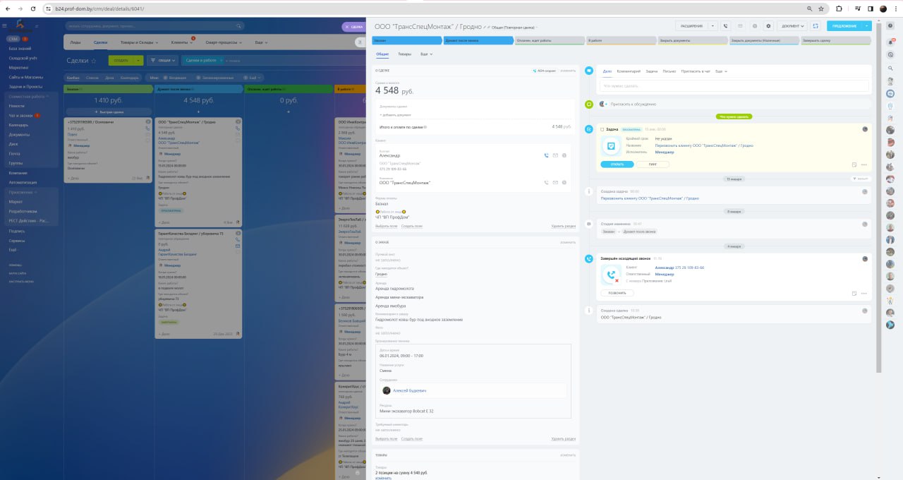 Автоматизация воронки продаж: Упорядочивание процесса обработки лидов и сделок улучшило оперативность и структуру работы отдела продаж.