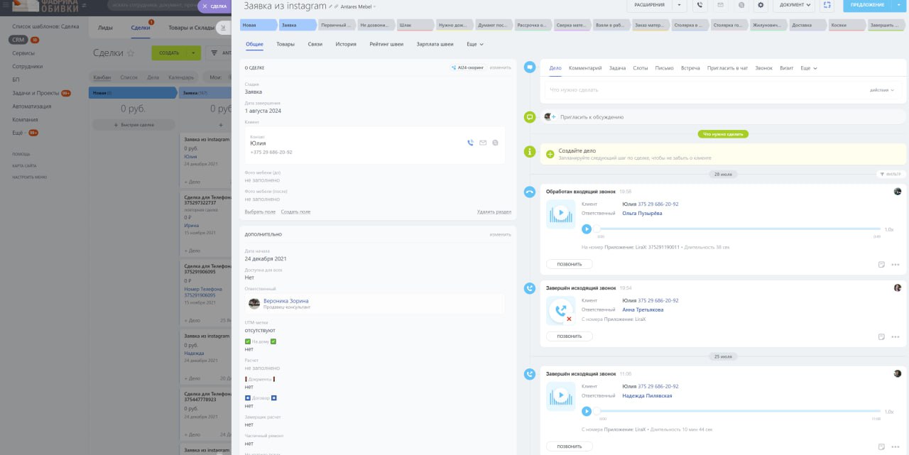2. Автоматизация бизнес-процессов: Мы внедрили автоматизацию рутинных задач, что позволило значительно ускорить обработку заявок и улучшить контроль над процессами. Это включало подключение телефонии в Б24, автоматическое создание Лидов из звонков, обработку сделок из почты и создание циклических бизнес-процессов. Интеграция сквозной аналитики #ROIStat с динамическим #CallTracking и #IP-Телефонией также сыграла ключевую роль в оптимизации работы.