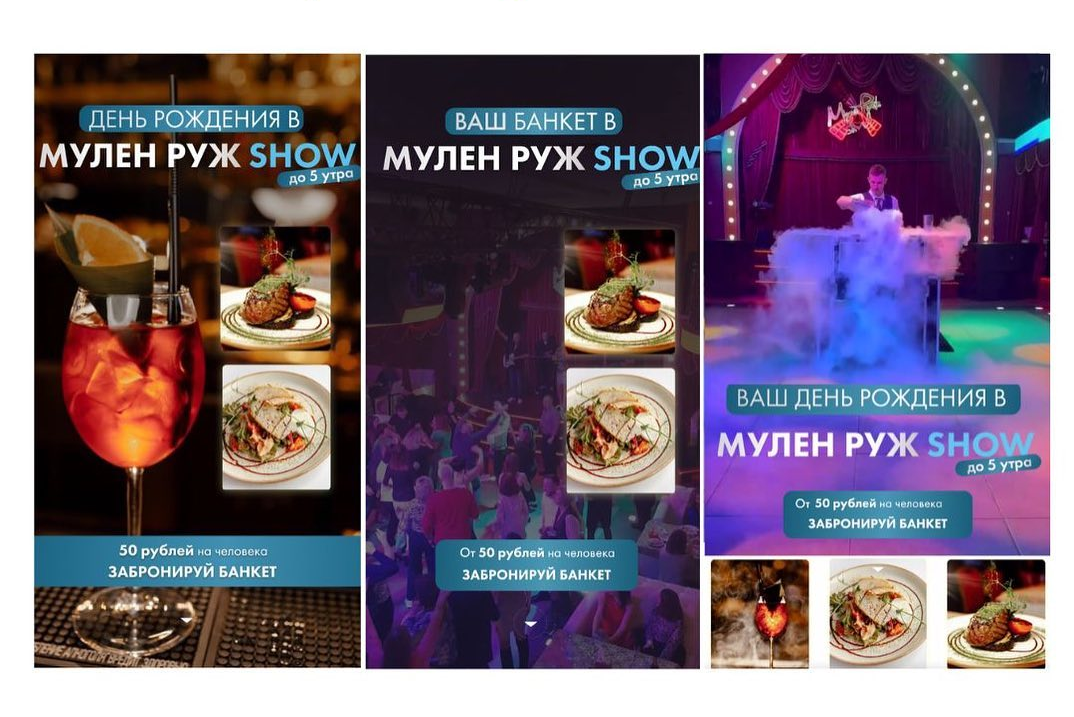 "Мулен Руж" — ресторан с давней историей, поэтому за это время накопил, в том числе, и негативные отзывы. Чтобы изменить отношение людей, решили провести масштабную рекламу в #Instagram. В ней не просто говорили/писали о себе, а показывали reels видео со своих вечеринок