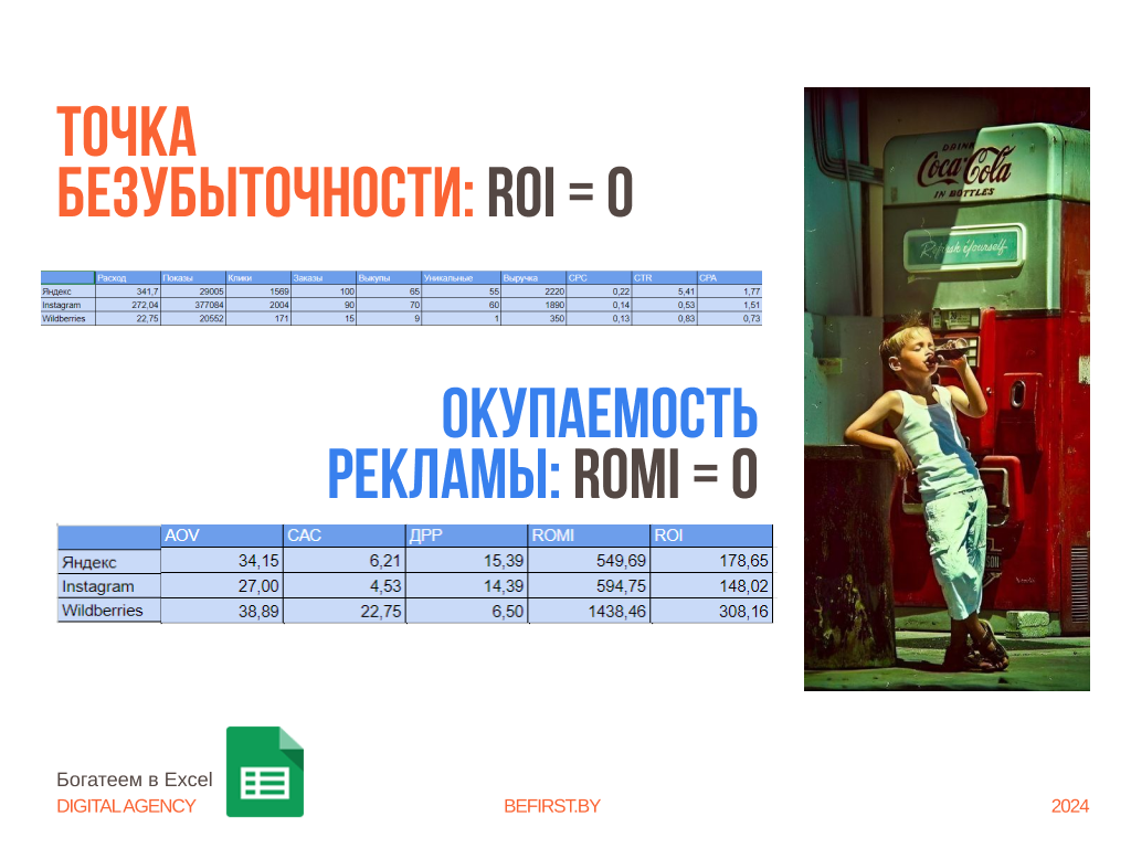 После оцифровки всех показателей по каждому каналу (например, Яндекс, Google, Instagram), вы видите, какие каналы дают прибыль, какие требуют оптимизации, а какие стоит отключить.