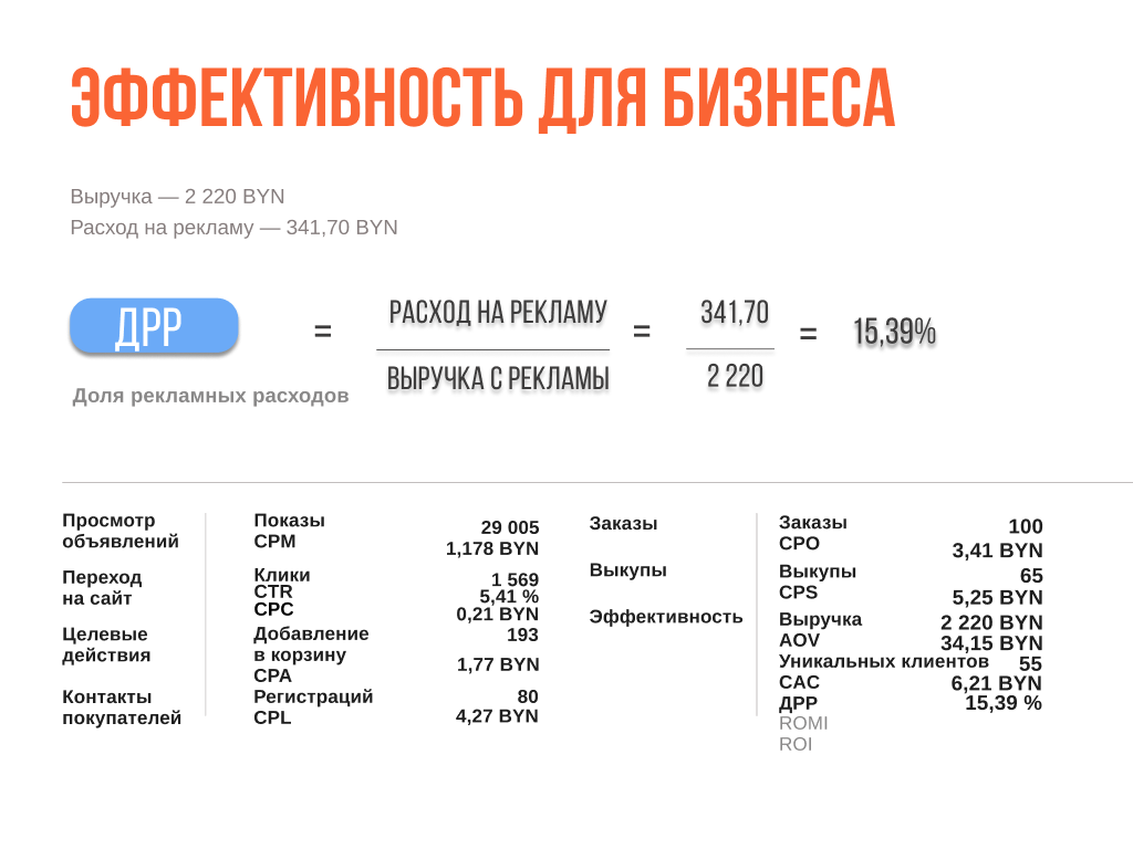 Показатели расчета эффективности: ДРР, ROI и ROMI