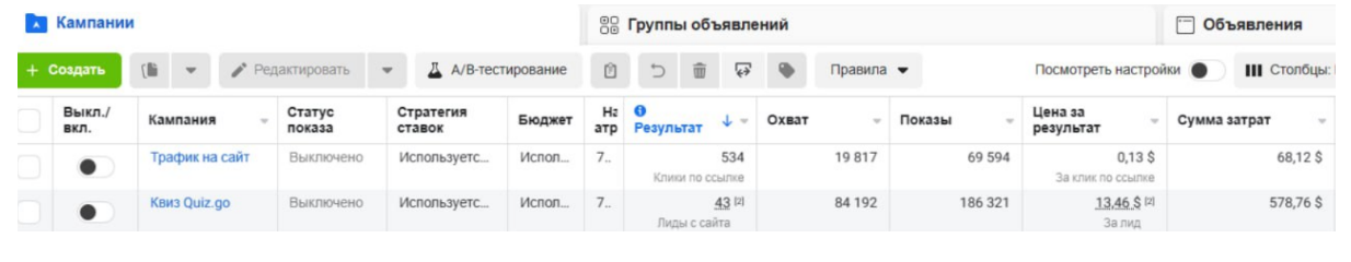 Усредненные результаты по кампаниям получились такие: